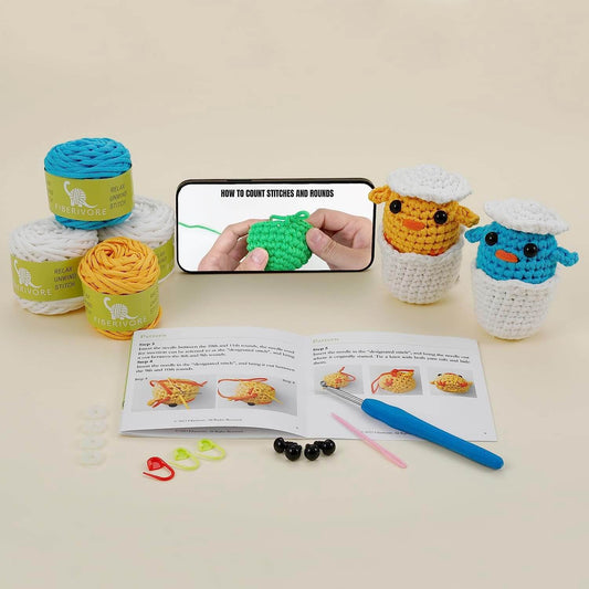 Chirpy Chick Crochet Kit for Beginners 2Pcs - Beginner Crochet Starter Kit for Complete Beginners Adults, Crocheting Knitting Kit with Step-by-Step Video Tutorialso Tutorials for Right- and Left-Handed People