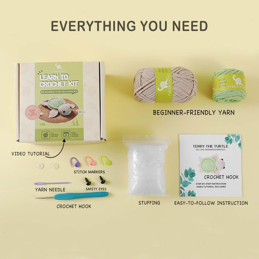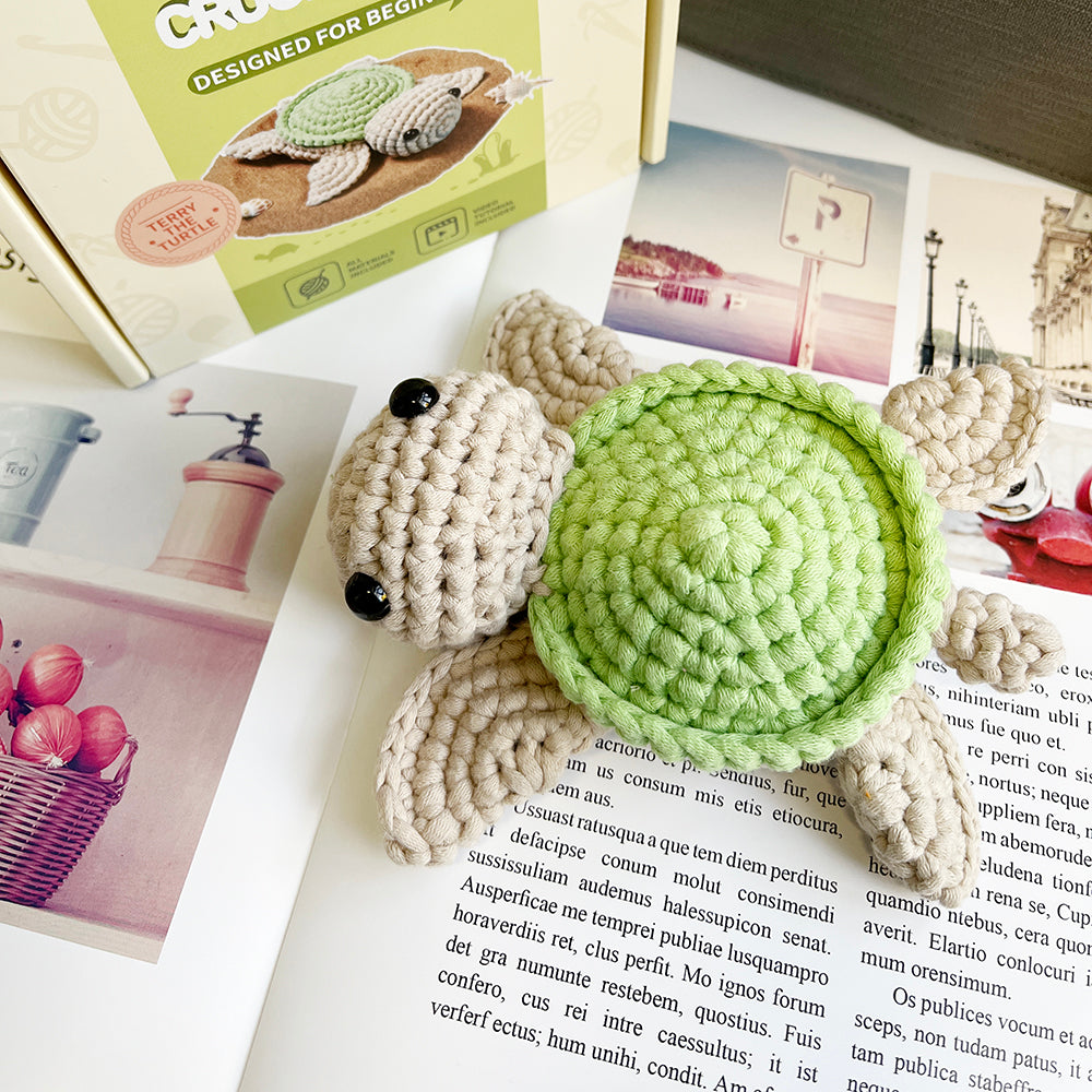 Crochet Kit for Beginners, Learn to Crochet Kits for Adults and Kids, Animal Amigurumi Crochet Kit with Step-by-Step Video Tutorials for Right- and Left-Handed People, Terry The Turtle Kit