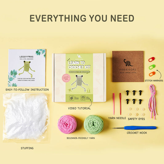 Crochet Kit for Beginners, Learn to Crochet Kits for Adults and Kids, Animal Amigurumi Crochet Kit with Step-by-Step Video Tutorials for Right- and Left-Handed People, Leggy Frog Kit